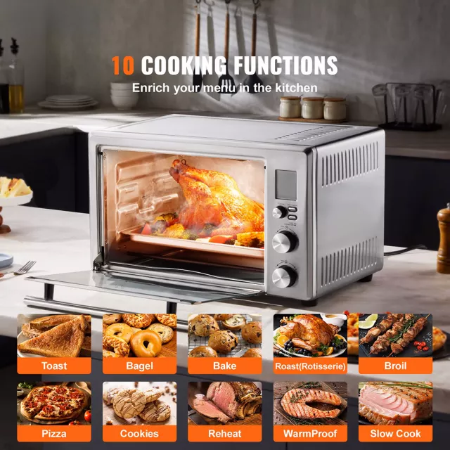 Transform your everyday meals with the power of this 10-in-1 Convection Toaster Oven. Designed for convenience, efficiency, and versatility, it brings professional-grade cooking right to your countertop. With a generous 28L (29.6Qt) capacity and an 1800W high-performance heating system, this multifunctional oven lets you bake, roast, broil, toast, and more—delivering mouthwatering results with minimal effort.
