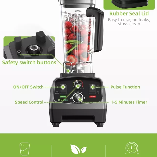 • High-Performance Motor: A robust 3HP (2200W) motor provides powerful blending, capable of handling everything from frozen fruits to tough grains.