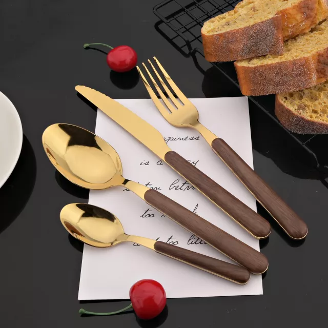 This cutlery set isn’t just tableware—it’s a dining experience. The stainless steel design ensures long-lasting shine and strength, while the wooden-style handles add a rustic, cozy touch to your table. Whether you’re enjoying a family dinner, hosting a formal event, or setting the table for a romantic evening, this set complements every occasion beautifully.