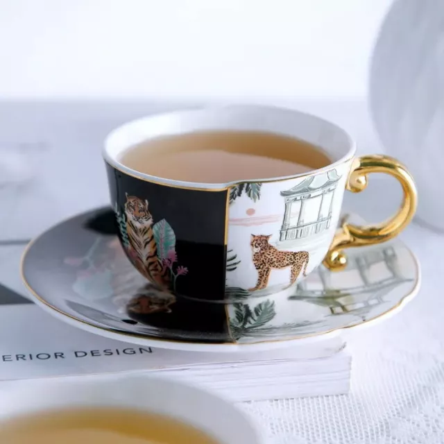 Transform your morning routine or afternoon tea into a moment of pure indulgence with the Colorful Leopard Ceramic Coffee Cup with Gold Handle & Saucer. Designed for those who appreciate style, art, and comfort, this cup set effortlessly combines elegance with playful charm. Each piece is beautifully hand-painted with a vivid tiger-leopard motif, highlighted by gold-plated details that catch the light and bring a touch of sophistication to your table.