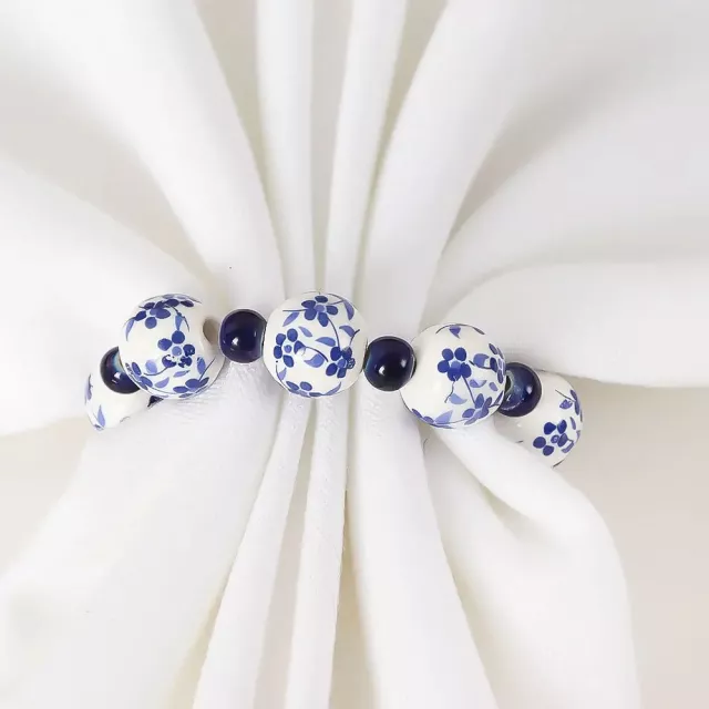 Add a touch of creativity and cultural flair to your dining experience with our Hand-Painted Blue and White Bead Napkin Rings. Available in sets of 6 or 12, these unique napkin holders are designed to bring rustic charm and elegance to your table. Each napkin ring features intricate hand-painted designs, showcasing a beautiful ethnic style that adds character and warmth to any occasion.