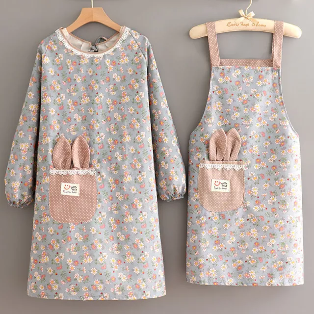 Floral Rabbit Cotton Apron – Oil-Proof, Wear-Resistant Kitchen Essential