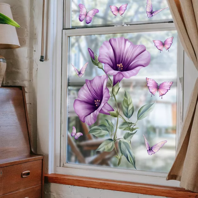 Add charm, color, and elegance to your windows with these stunning Purple Flower & Butterfly Electrostatic Window Stickers. Designed to mimic the soft beauty of blooming flowers and fluttering butterflies, these decals transform plain glass into a vibrant landscape scene—all without using a single drop of adhesive. Perfect for kitchen windows, sunrooms, bathrooms, or any smooth glass surface, this decorative touch brings serenity and style to your space in seconds.