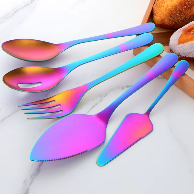 Rainbow Matte Stainless Steel Dinnerware & Serving Utensil Set – 5 PCS