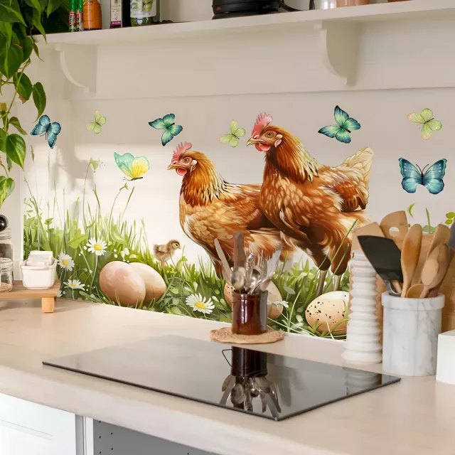 Rural Meadow Hen & Butterfly Wall Sticker – Self-Adhesive Home Décor