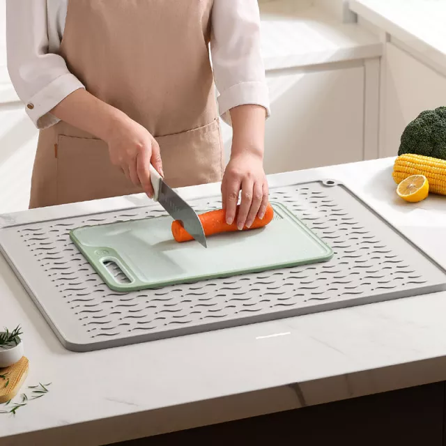 Crafted from high-quality silicone, this drying mat is built for long-term use. It’s heat-resistant, flexible, and tough enough to handle hot pots and pans straight from the stove. The corrugated texture provides excellent drainage and airflow, helping your dishes dry faster while preventing water buildup. Its non-slip surface ensures your tableware stays safely in place, even when wet.