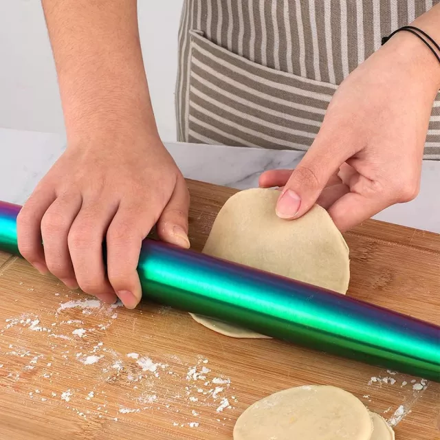 Available in five stunning finishes—Silver, Gold, Rose Gold, Rainbow No.3, and Rainbow No.0—this rolling pin adds a touch of modern elegance to your kitchen. Its stainless steel body resists rust, corrosion, and odors, making it a hygienic and long-lasting choice for everyday cooking. Simply rinse or wipe clean after use—no hassle, no residue. Whether you choose one or a set of two, this rolling pin fits perfectly into any professional or home kitchen.
