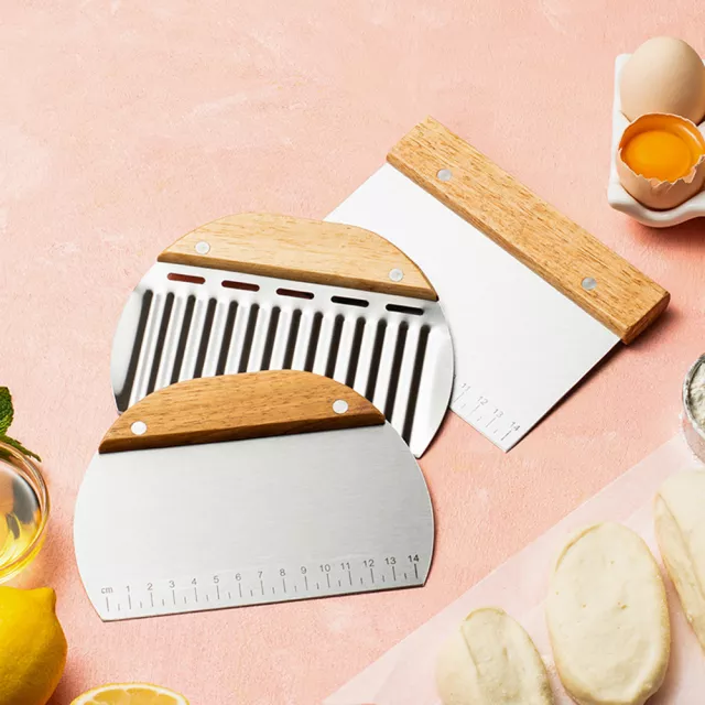 This dough cutter is made from high-quality stainless steel that resists rust and maintains a sharp, smooth edge for long-lasting performance. The ergonomic oak wood handle adds a natural touch of elegance while providing a comfortable, non-slip grip for better control. A built-in measuring guide ensures precise cuts, making it easy to size pastries, pasta, and dough to perfection.