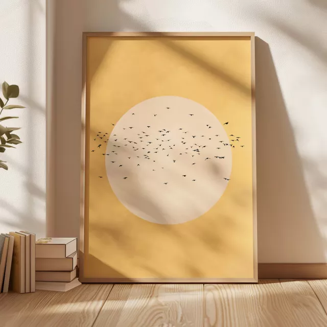 • Vibrant Design: Featuring a radiant yellow sun and a flock of birds in flight, this art print will instantly draw attention and set a peaceful yet dynamic tone in your space.
